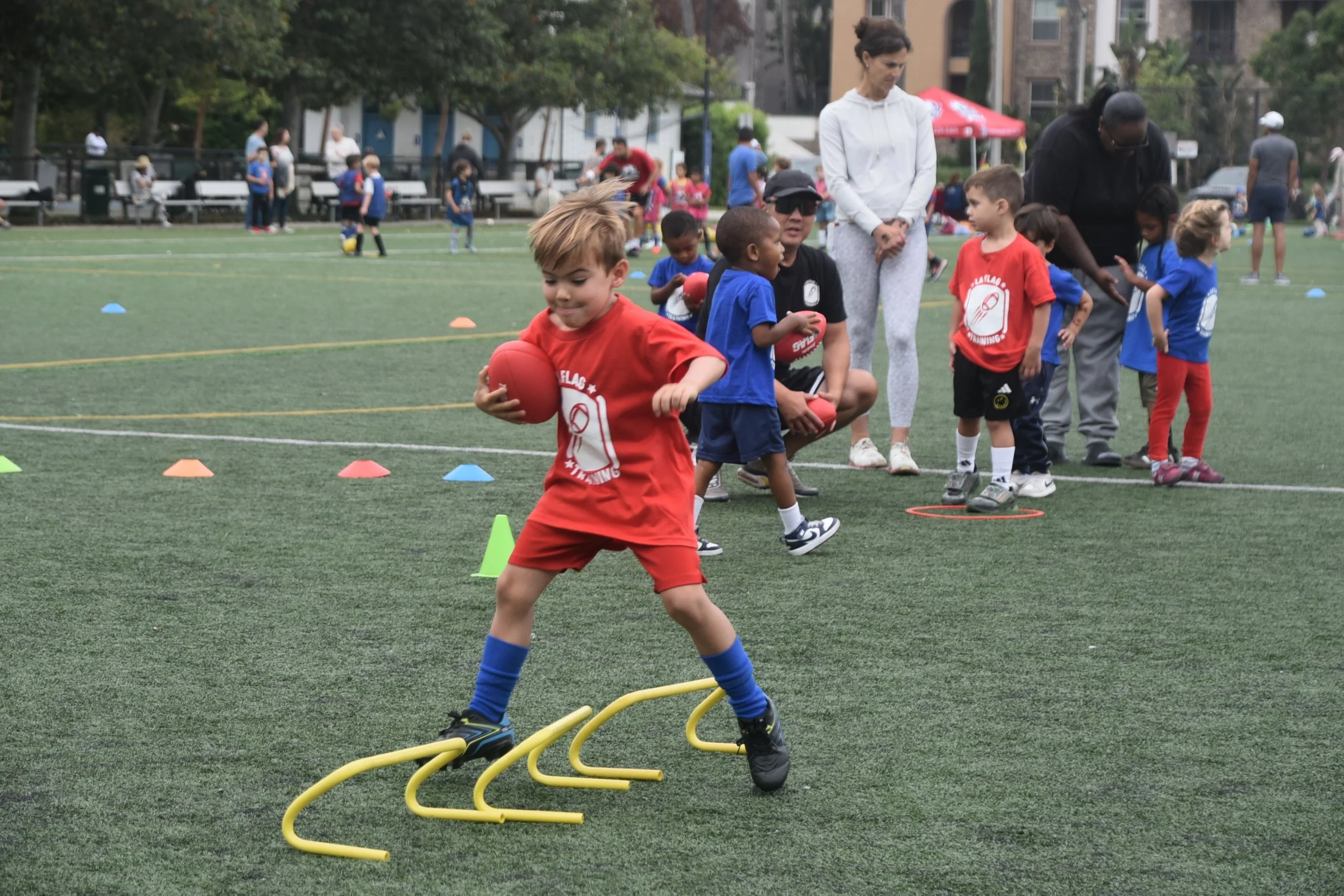 Build Confidence: From passing and receiving to running and pulling flags, your child will develop skills that make them feel like a star.